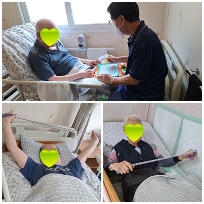 침상에서 팔운동도 하고 . 글쓰기 연습도 하고 있습니다~^^~